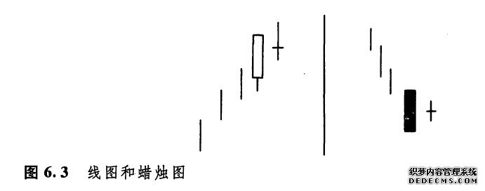 孕线形态与西方技术分析理论中的收缩日概念有相似之处。按照西方的理论,如果某日最高价和最低价均居于前一日价格区间的内部,则这一天就是一个收缩日(如图6.2所示)。但是,西方技术分析理论认为,收缩日通常没有什么预测意义。而在蜡烛图理论中,孕线形态的出现,预示着市场将同先前的趋势分道扬镰。另一方面,西方的收缩日概念仅要求当日的最高点和最低点都处在前一时间段的区间之内,而孕线形态则不仅要求当日的开市价与收市价均处于前一日的较宽的开市价与收市价的范围之内(即前一日是一个较高的实体),而且要求当日的开市价与收市价之间的距离比较小(即这一天是一根较小的实体)。