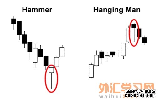 锤子线线和上吊线看上去一模一样,但又依赖于价格行动的完全不同的含义。两者都有可爱的小身形(黑色或白色),长下影,短的或不存在的上阴影。