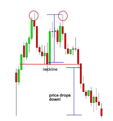 如图所示,你能够看到,价格跌破颈线位并出现完美的下跌行情。记住,双顶形态是反转形态的一种类型,因此,在经历一段强劲上升行情后,你将会去寻找这一形态形成的机会。