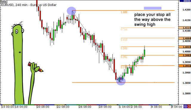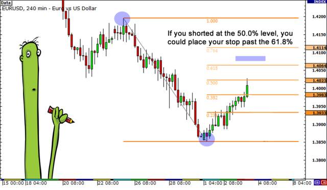 这一设置止损的方法原因在于,你相信50%的水平位将作为阻力位而保持稳定。因此,如果汇价突破该水平,那么你的交易策略将是无效的。
