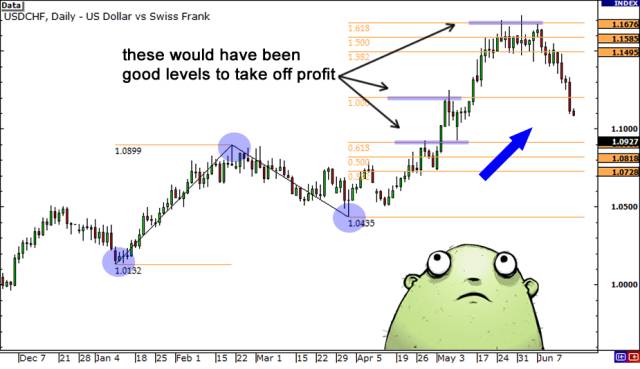 明白在哪里设置止损和知道在何处入场或获利回吐一样重要。你不能够只是基于斐波那契水平位入场而不去考虑退出时机。