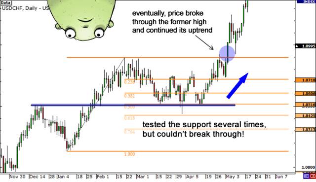 现在是美元/瑞郎回撤至波段低点后所发生的情况: