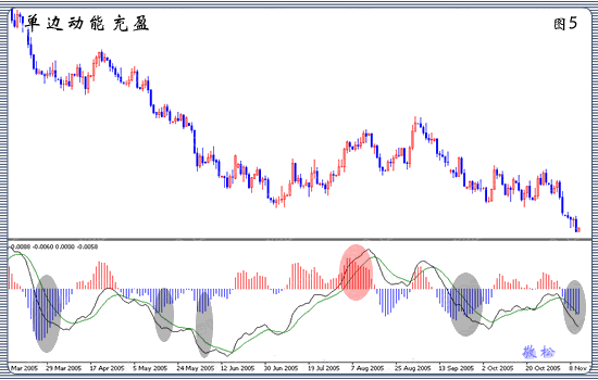 这里选取了日线图上的5和13两根均线作为金叉和死叉发出买卖信号的基础,从图3中可以发现,除了蓝色圆圈内的震荡走势中,这两条均线发生过持续亲密接触之外,其他时候所发出的金叉和死叉信号都能提供中线或者短线的交易机会与持仓信号。