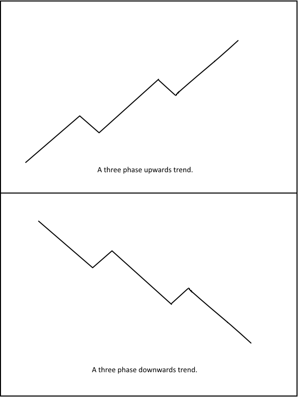道氏的三重运动观点要求投资者或者交易者要抓住主要趋势,而不要被短期的日常波动所干扰。此外,无论主要趋势为上升还是下降,市场均会经历三个阶段。
