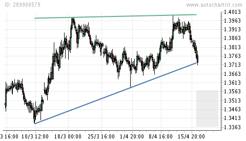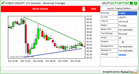 这是Autochartist的截图,请注意绿线指向低位高点,而蓝线指向等位低点。两线交汇之后,将出现强劲的走势。