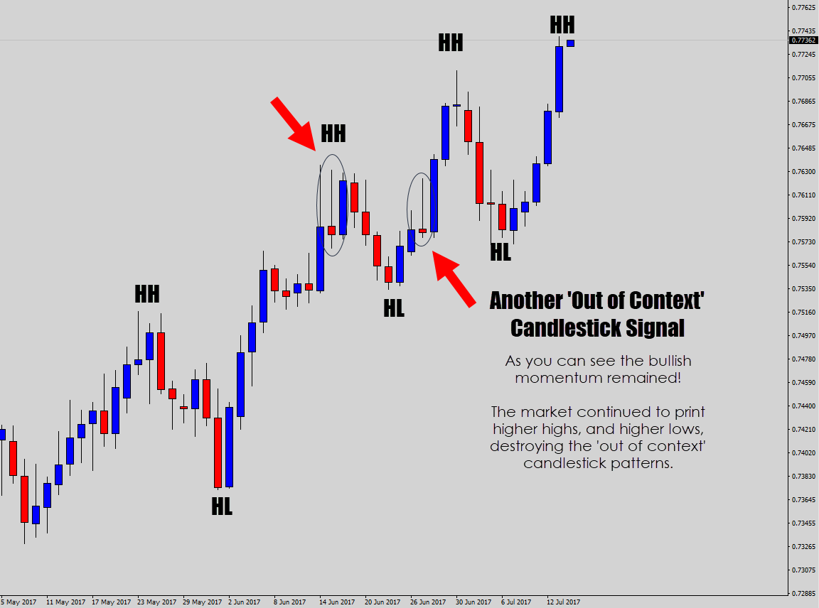要透过蜡烛图看到更多。退后一两步,看一看市场结构、以及其它包括支撑/阻力位的技术因素,来决定买入或者卖出。然后再确定蜡烛图信号是否和你的价格走势分析一致。