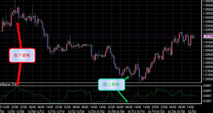 1.当DEM指标低于0.3时,价格有可能向上逆转。2.当DEM指标高于0.7时,价格有可能向下逆转。