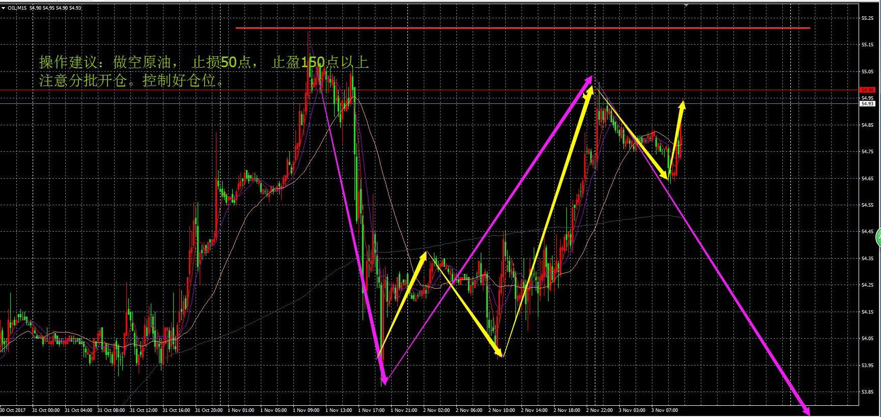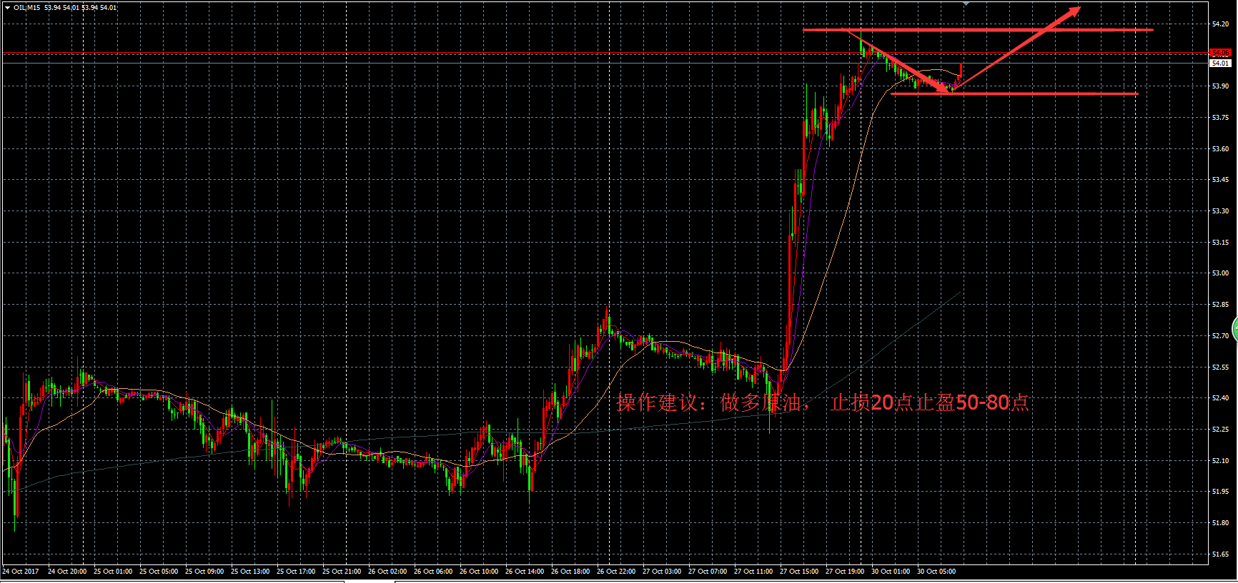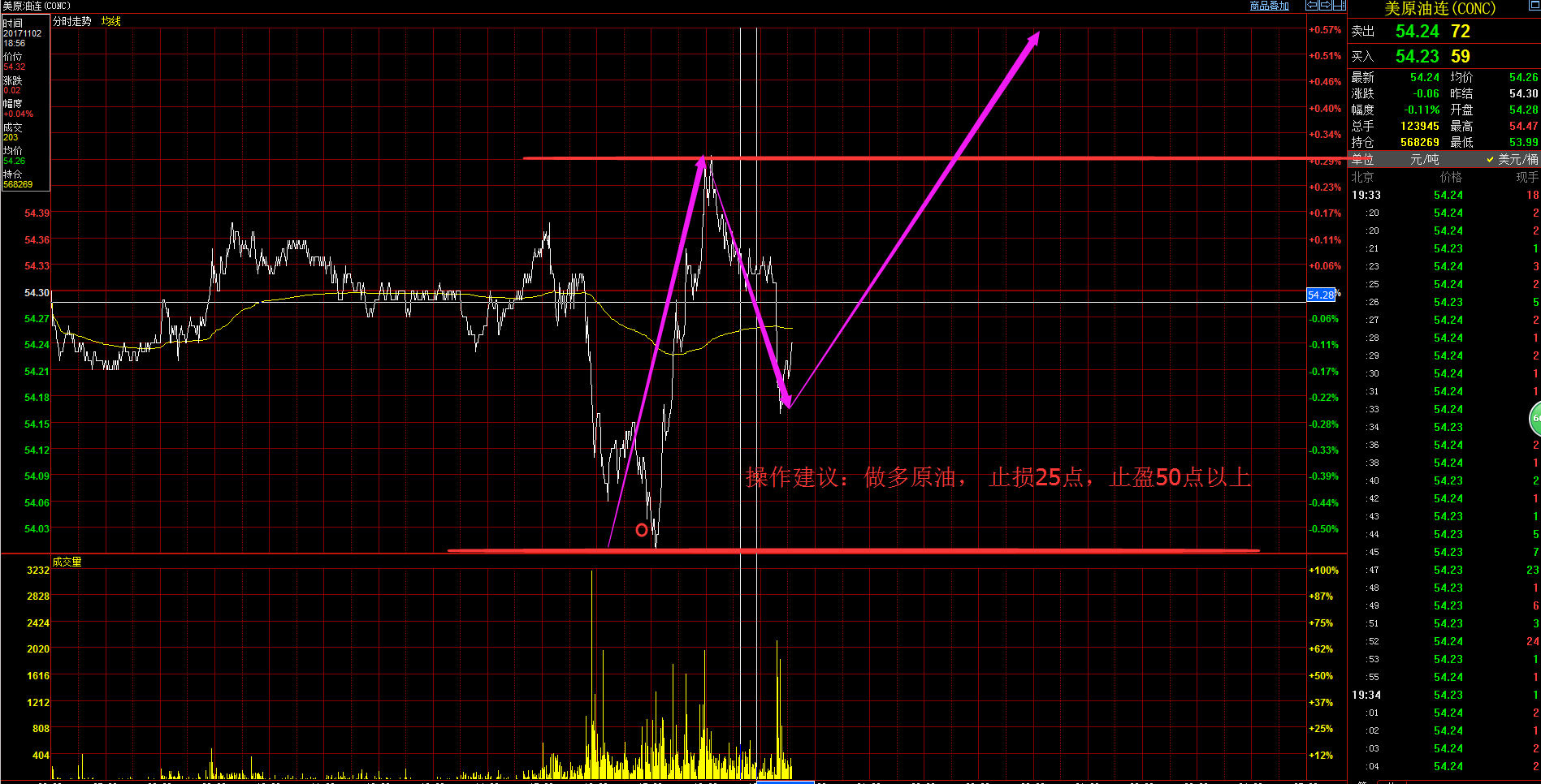 10-30原油操作指示和原油当日走势图