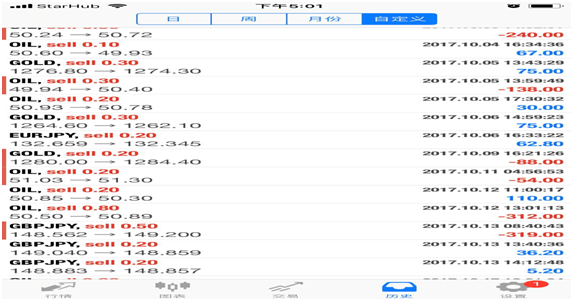 10-03当日原油强势上涨,最高上涨到55.76.客户当日亏损约750美金。客户首仓控制在5%(按照净值4000美金结算),当日总体仓位控制在15%,风险控制合理。
