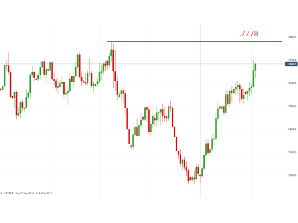 举个例子,假如下图的澳元/美元将涨破0.7778,我们有两种方法可以避免上述情况的发生。
