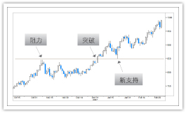 「阻力位」及「支持位」会不断重复出现,因为每一个阻力或支持,都是好友及淡友的必争之地。假若价格升破了阻力位,或跌穿阻力位,均会引来更多人顺势而行,推动价格继续上升或下挫。