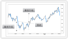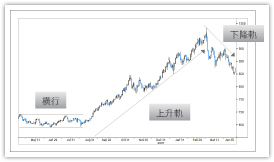 于2007 年8 月中至2008 年3 月中,黄金价格处于上升的趋势,整体沿着一个离平面向上35 度的上升轨道。于整体的升势中,金价虽然有上有落,但每次回落均不会跌穿该上升轨道,反而上升的步伐则愈来愈高,于技术走势上又名「一浪高于一浪」。