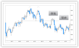 双顶/双底 双顶/双底,是价格形成了两个顶部或两底部。以双顶为例,价格首先升至一个新高,然后作调整,之后价格再次反弹,尝试挑战上次高位,可惜失败。价格重回并突颈线,价格目标就是顶部至颈线的距离。 |