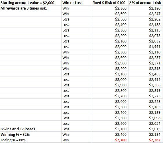 以下是快速的数学:每笔 100 美元的风险 X18 笔的亏损=-$1800, 7 笔的成功盈利 X3 倍于风险的回报=$2100。