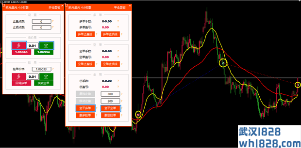 下图还是那笔多单,在价格创新高的时候,rsi在不断走低,如下图黄圈。也就是满足了背离条件,于是平仓。