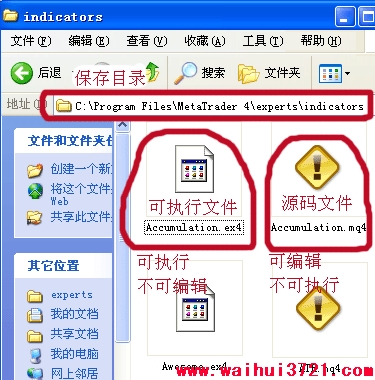 另一种就是ex4文件,这是MT4自定义指标的可执行文件,由mq4文件编译得到。