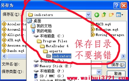 也可以在记事本中新建一个文件,把网页上的源码贴进记事本,然后取个文件名保存到上面提到的目录,不过文件后缀必须输入mq4,保存类型选择“所以文件”