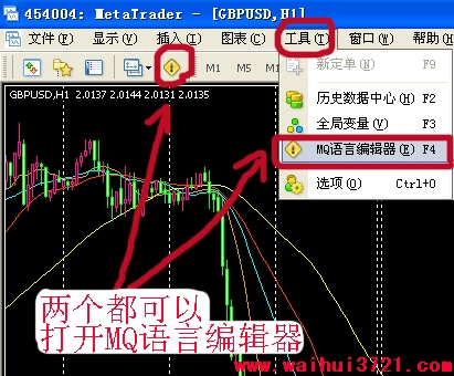 mq4文件编译为ex4可执行文件有两种方法: