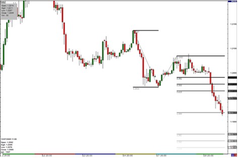 交易者认为在1.2085和斐波纳契扩展位0.382之间,会有区间震荡的走势,他们开始来回交易。
