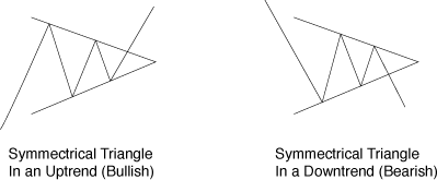 对称三角形-中性形态,虽然通常被看成是持续性形态,但它可能向任意一边产生突破。