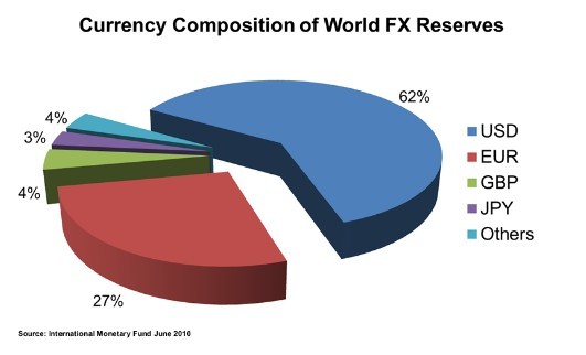 事实上,根据国际货币基金组织 (IMF)所提供的数据,美元几乎占全球官方外汇储量的62%! 因为几乎每一个投资者,企业和中央银行都拥有美元,他们很重视美元。