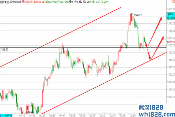 黄金:在周四意外大跌近20美金后,周五黄金再次涨回10美金,其主要因素在于美联储方面的鸽派言论影响,凌晨美联储各大高官分别发表讲话,今年并没有“降息”考虑,但是将维持利率不变,此消息一出黄金由空转多,我们在昨天早评给到黄金不有效下破1323-24继续看多,在实盘内给到1325的多单,晚间也顺利止盈,而黄金今天整天就这一波行情,我们虽没有全部把握到,但我们不管是方向还是进场的位置,已经进场的理由都是比较稳健的,本周黄金完美收官,那么下周的黄金我们又该怎么分析呢?