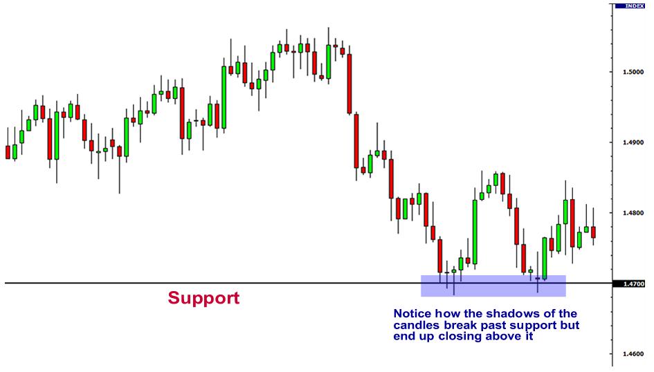 为帮助你过滤掉这些假突破行情,你应该将支撑和阻力更多的看作某一“区间”,而非具体的数值。
