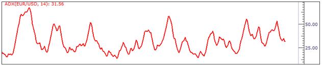 图中可见,ADX与诸如RSI(相对强弱指标)或者CCI(顺势指标)看起来非常相似,但需要明白,ADX是中性的。因此ADX走高不代表汇价看涨,而走低也不说明汇价有下跌的可能。
