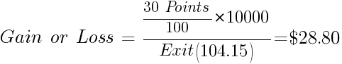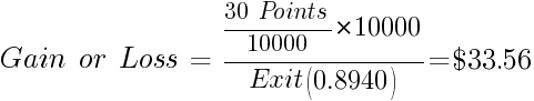 换言之,迷你合约($10,000)中的 1 点价值 $1,而且它的计算非常简单——您赚取了 $30.00。如果您交易规模为 $100,000 的合约,您的收益显然会高十倍。