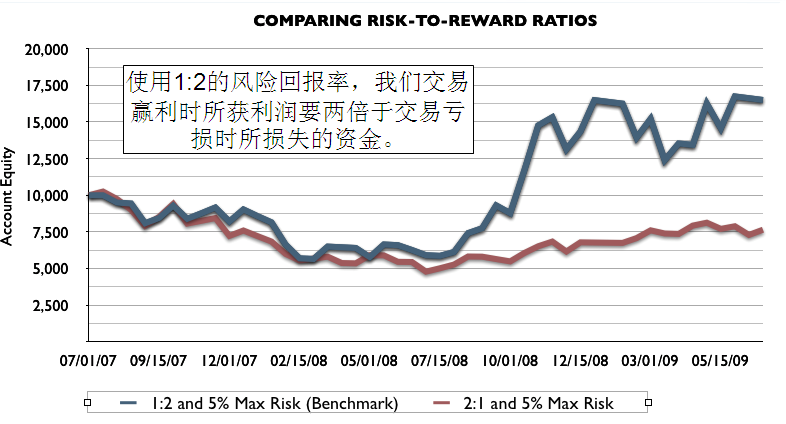 次佳方法测试中,每笔交易有更多的账户净值承受着风险。因此次佳方法的止损和限价与标准方法一样,只是交易规模更大,也就是交易杠杆更大。请请记住,杠杆不仅可放大收益它同样也扩大损失。杠杆对交易新手而言是很具有吸引力的,被认为是一种赚快钱的方法。值得提醒的是:杠杆是一个危险的工具,需要谨慎使用。而且不要忘了,杠杆只有在做对交易时才有用。可我们都知道要做对交易并不是件容易的事,特别是对交易新手而言。如果很简单,我们就不用开设类似于此的课程了。