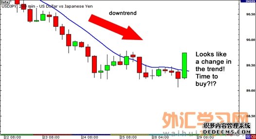 比方说,美元/日元一直处于跌势,但是一个新闻报道出来后,导致了价格的激增。