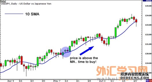 如果价格行为趋于低于移动平均线的话,那就表明它呈下跌趋势。