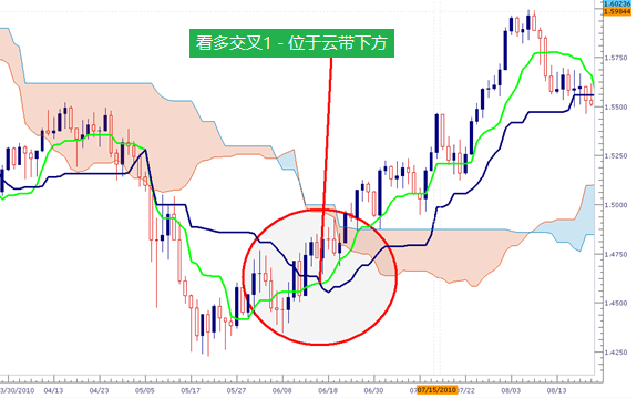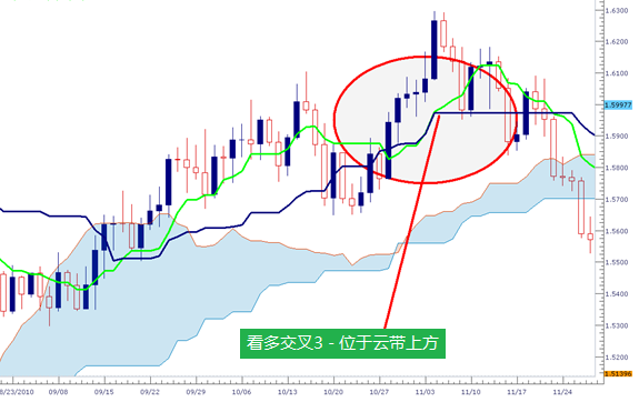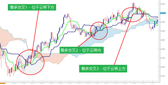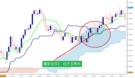 同理,交易者一般将云带内的看多交叉看作为中等强度。
